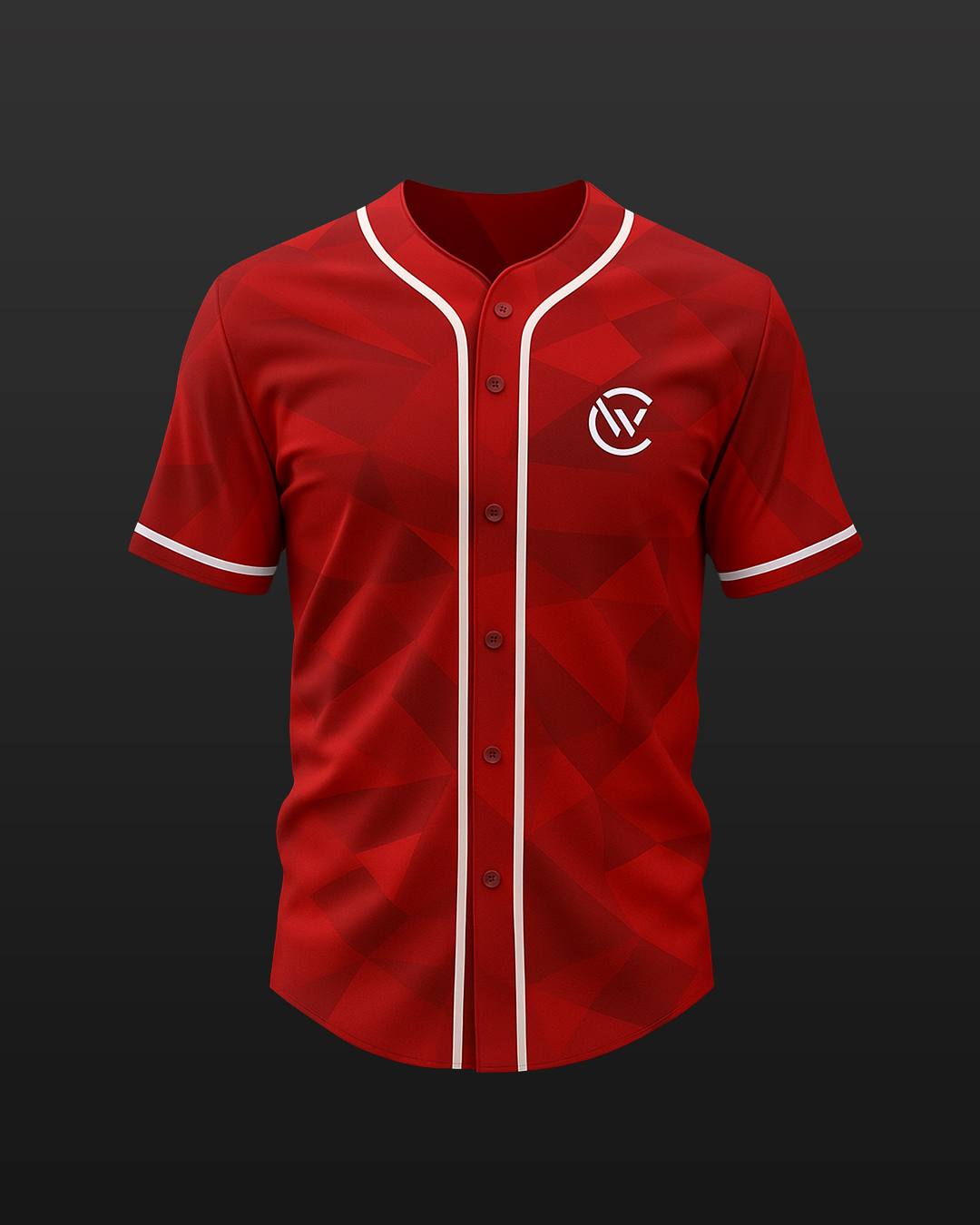 - Step up to the plate in style with our Crimson Diamond Baseball Jersey. This jersey features a bold red base with a distinct, embossed diamond pattern that adds a unique texture and modern edge. The classic button-up front, paired with crisp white piping on the collar and sleeves, provides a timeless baseball aesthetic. Designed for comfort and performance, this jersey is versatile enough for a competitive game or as a stylish piece for everyday wear.